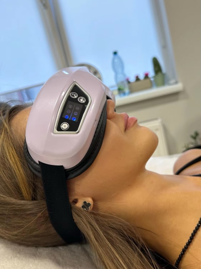 The Besfosee's advanced system features nine independent airbags that inflate and deflate in precise patterns to mimic professional massage techniques. These airbags target specific pressure points around the eyes, temples, and brow area, creating a customized compression massage that relieves tension effectively.