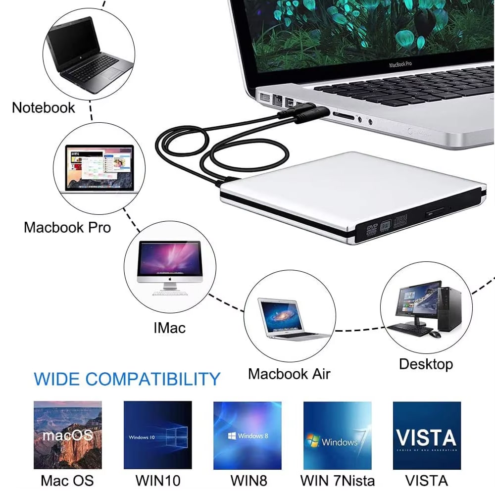 Transform your laptop or desktop into a complete multimedia powerhouse. The Discynod Blu Ray Player delivers stunning 3D Blu-ray playback, fast disc burning, and seamless compatibility across all devices—perfect for modern computing without built-in drives.
