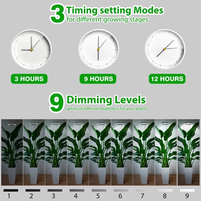 The nine-level dimming control allows you to adjust intensity from gentle seedling care to full-strength mature plant requirements.