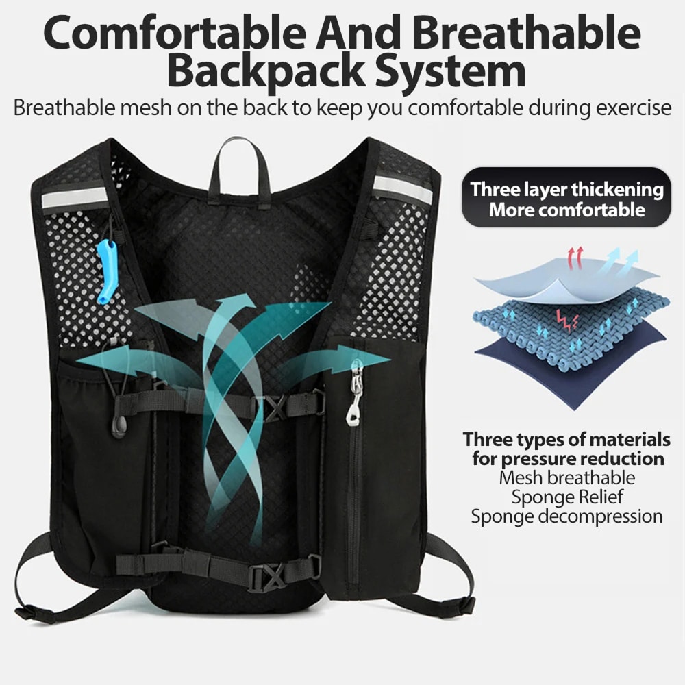 The HydraXrun Running Hydration Vest features an independent EVA water storage chamber that holds sufficient hydration for extended training sessions and competitive races.