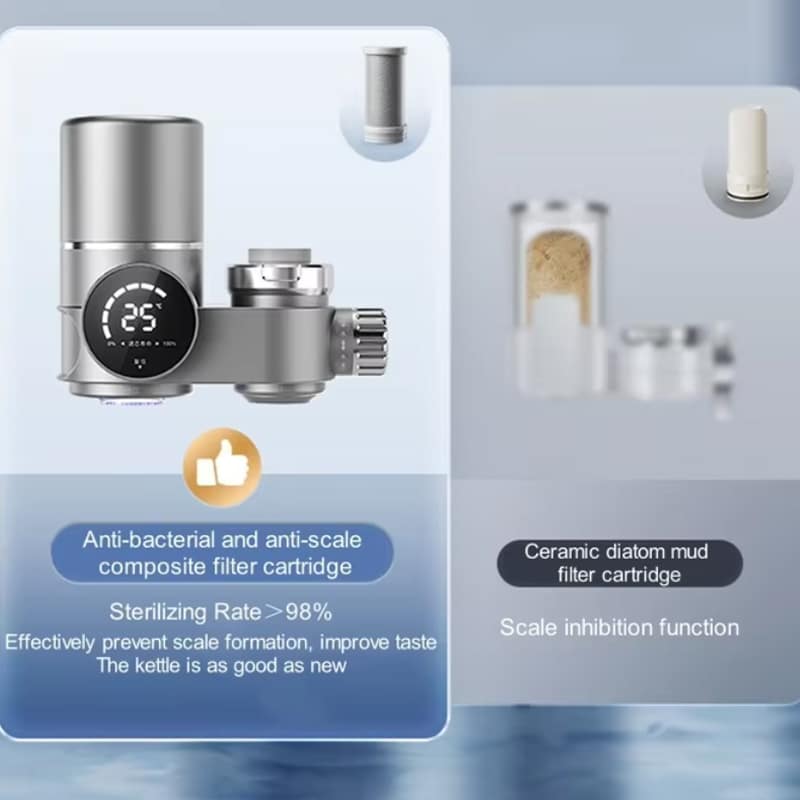 Filter cartridges typically last 3-6 months depending on your local water quality and usage. The smart digital display shows real-time filter status, so you'll know exactly when replacement is needed for optimal purification performance.
