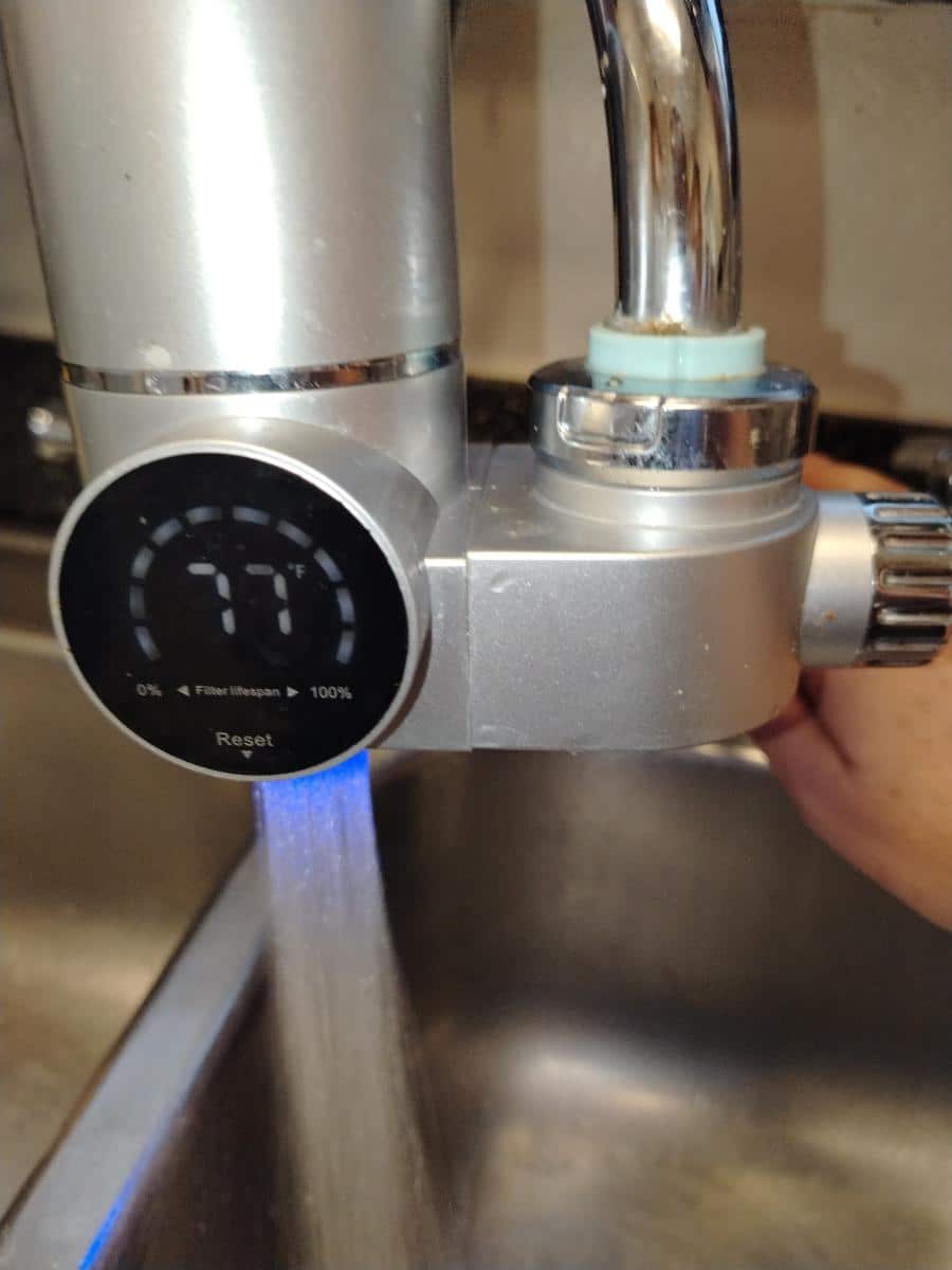 HydrTapi uses patented turbine hydraulic technology that converts water flow into electrical energy. As water passes through the device, it spins a small turbine that generates enough power for the digital display and UV sterilization system.
