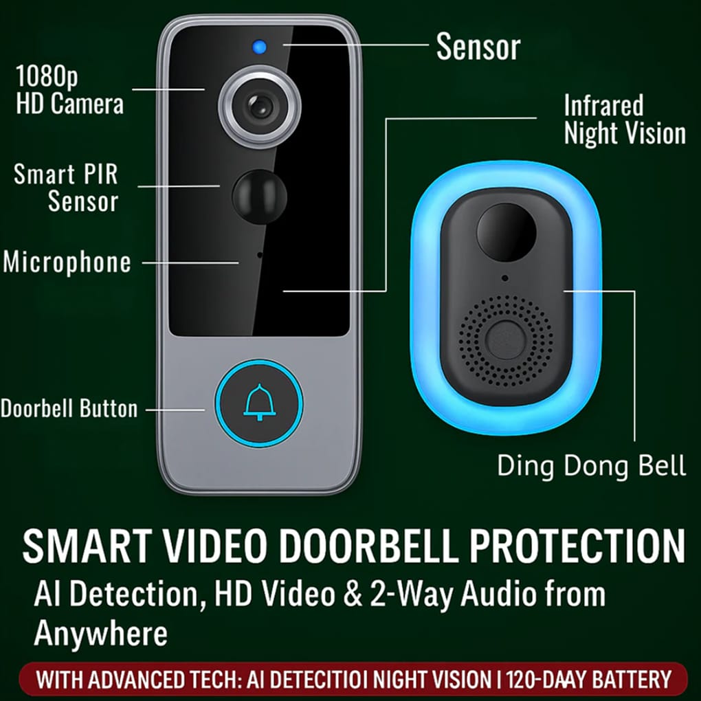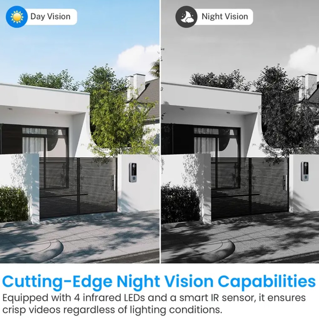 The PIR motion sensor typically detects movement up to 15-20 feet away. The 120° wide-angle lens captures your entire doorstep for comprehensive coverage without blind spots.