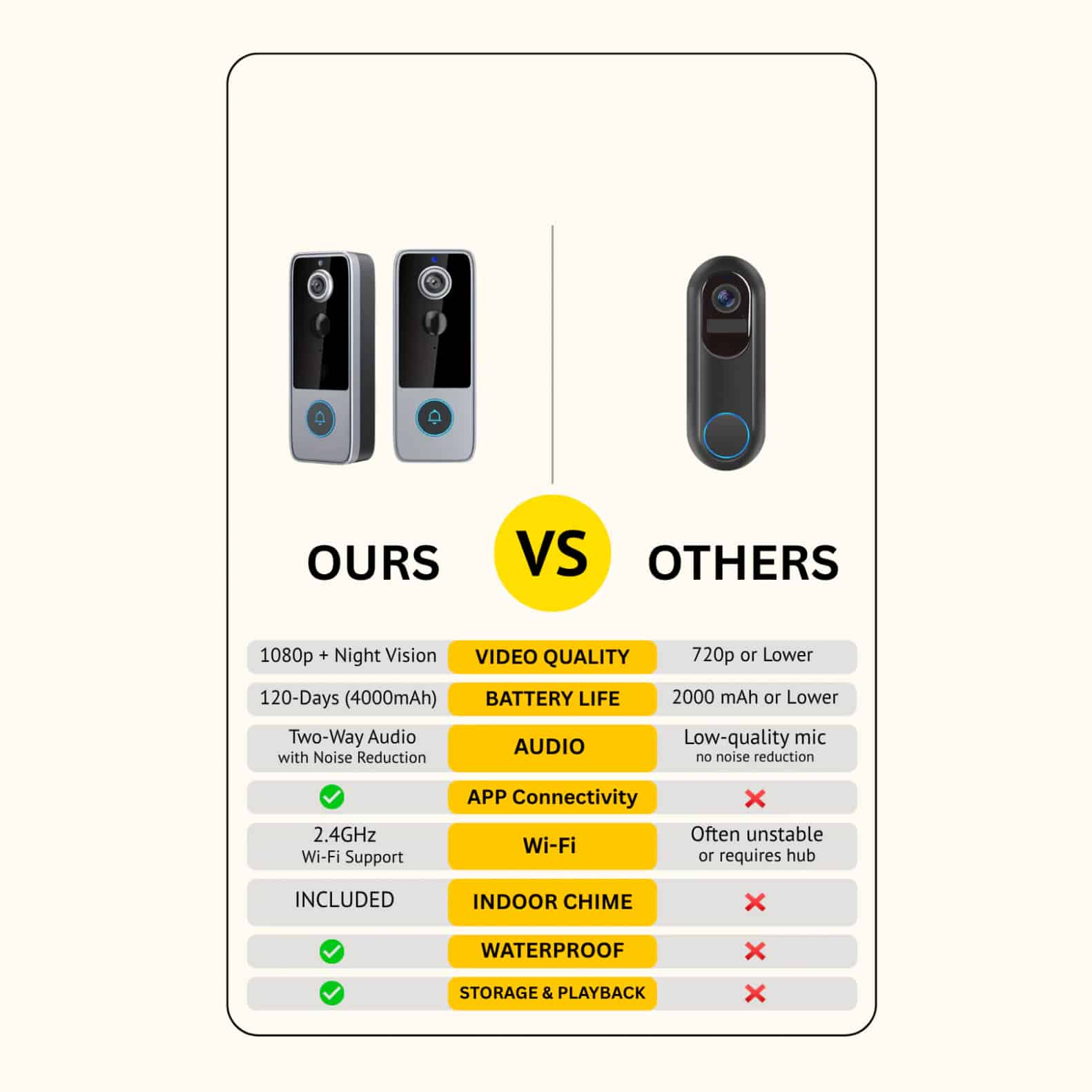 The Jinglabes doorbell operates reliably in temperatures from -20°C to 50°C. Its IP65 waterproof rating ensures consistent performance through rain, snow, heat, and dust.