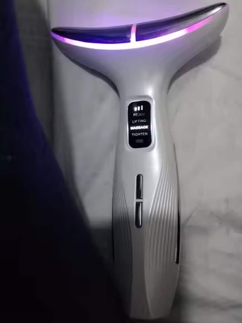 The ergonomic dolphin design allows the device to glide perfectly over your jawline and neck, creating a more defined and youthful facial contour.