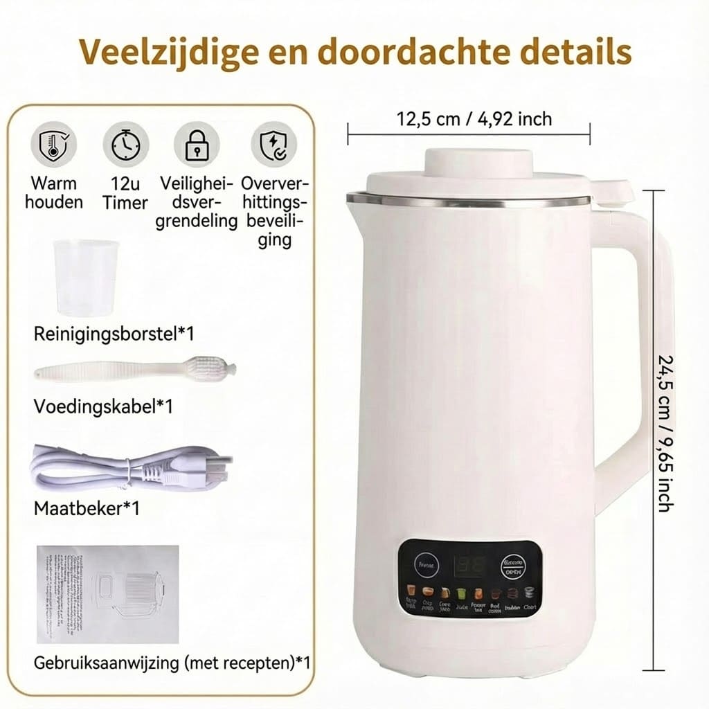 U kunt diverse plantaardige melk maken zoals amandelmelk, sojamelk, havermelk, cashewmelk, rijstmelk en meer. Het apparaat past automatisch de instellingen aan voor elk ingrediënt voor optimale resultaten.