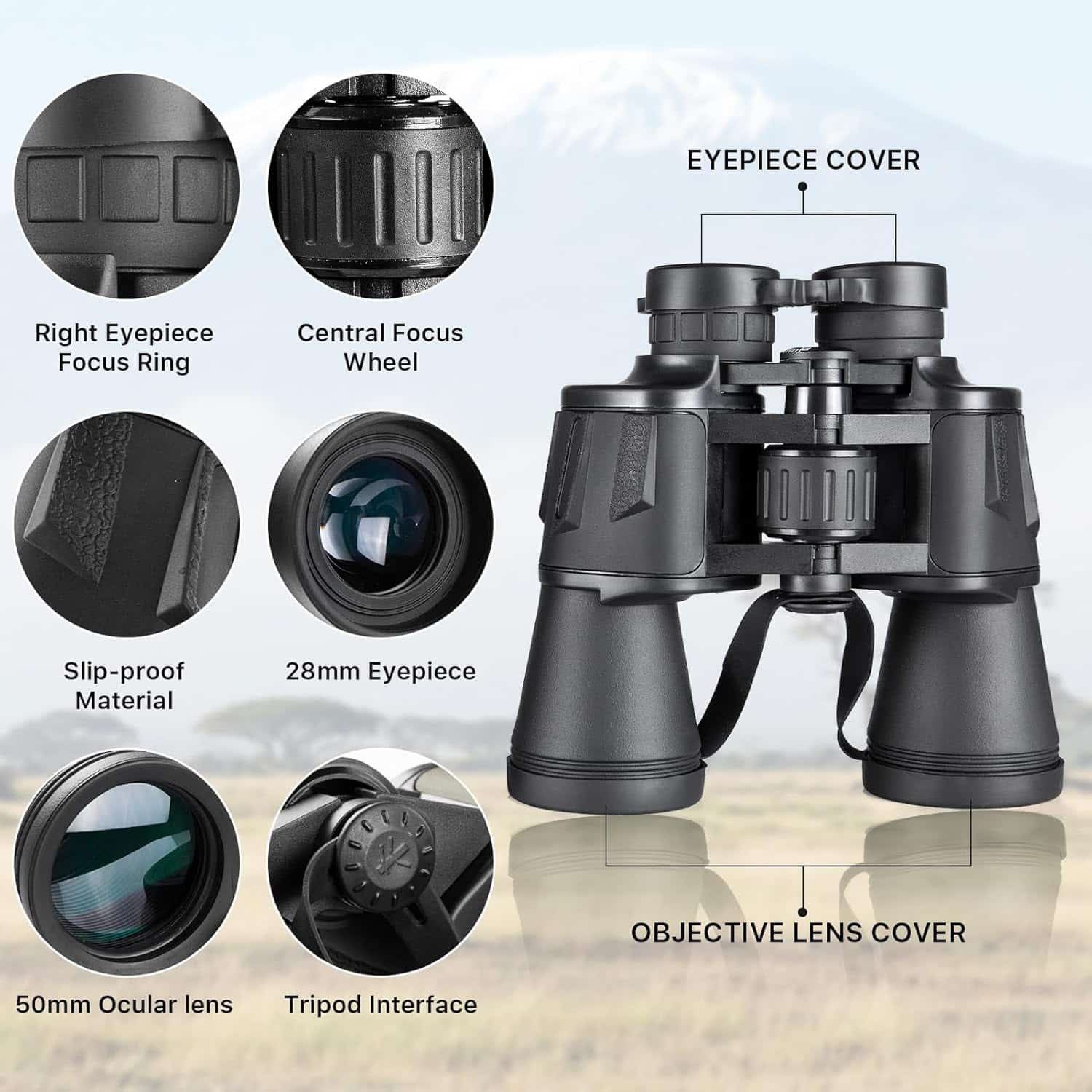 OptixZor Binoculars are built to withstand harsh outdoor conditions with an IPX6 waterproof rating and a rugged design, making them perfect for all-weather adventures.