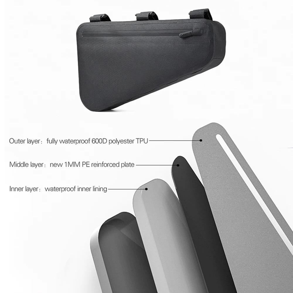 With its fully waterproof 600D polyester TPU outer layer and waterproof inner lining, the Pedrakox Bike Frame Bag ensures your gear stays dry and protected, no matter the weather conditions.
