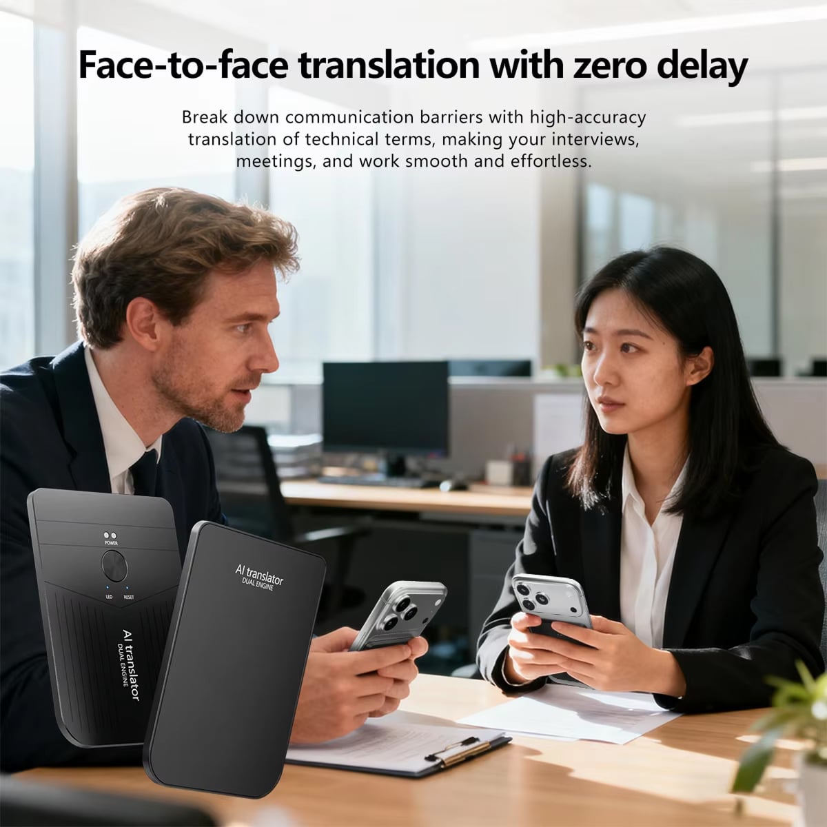 Definitely! The face-to-face translation mode enables natural dialogue with near-zero delay. Both people speak normally in their own languages, and the device translates instantly for seamless, authentic conversations.