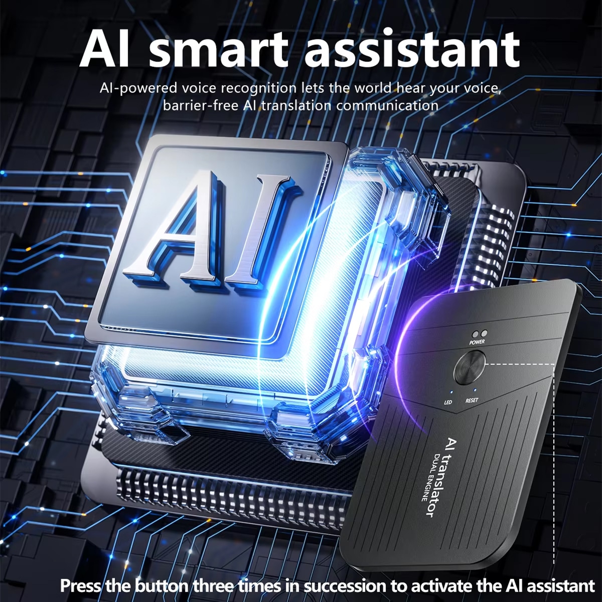 The built-in AI assistant responds to voice commands in multiple languages. Triple-press the button to activate it for quick translations, task management, and helpful information throughout your day.