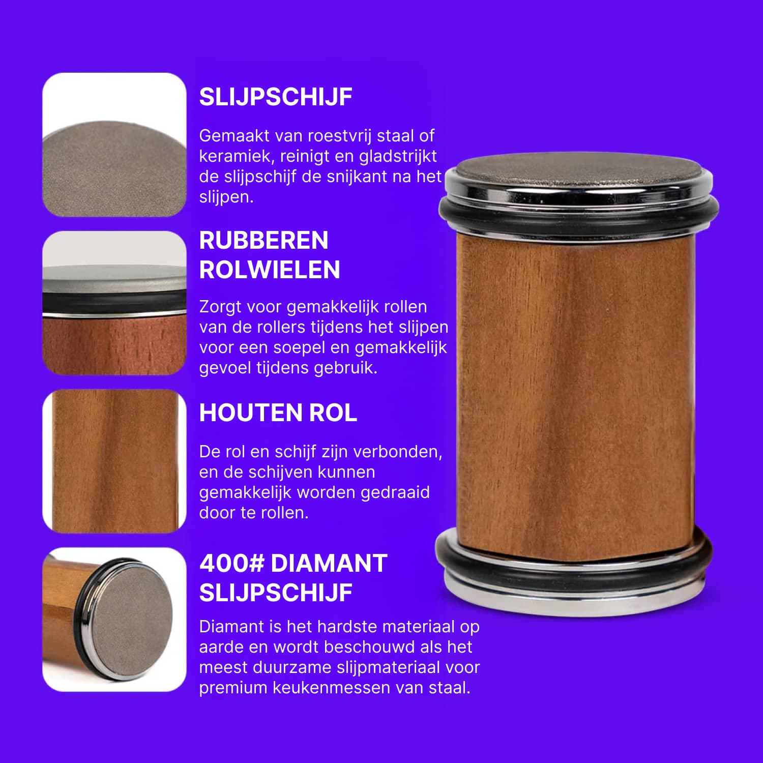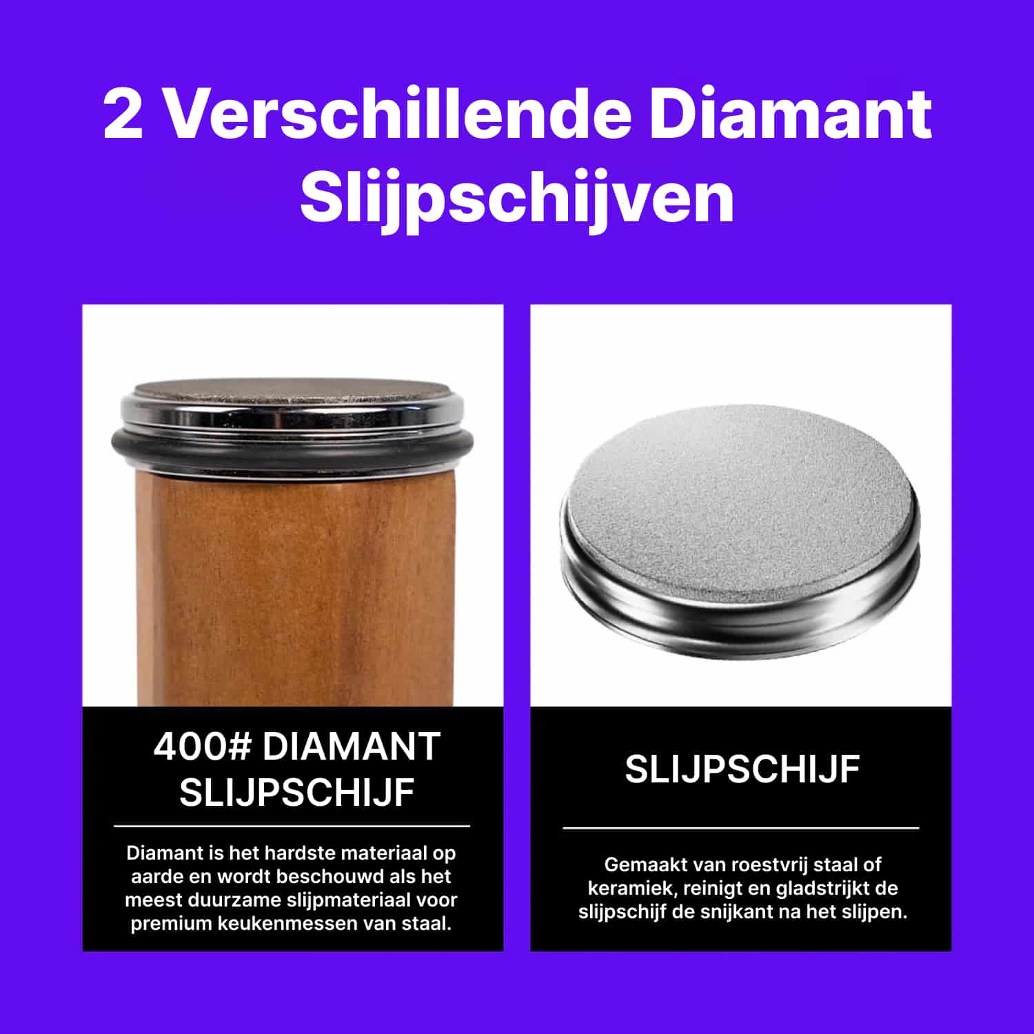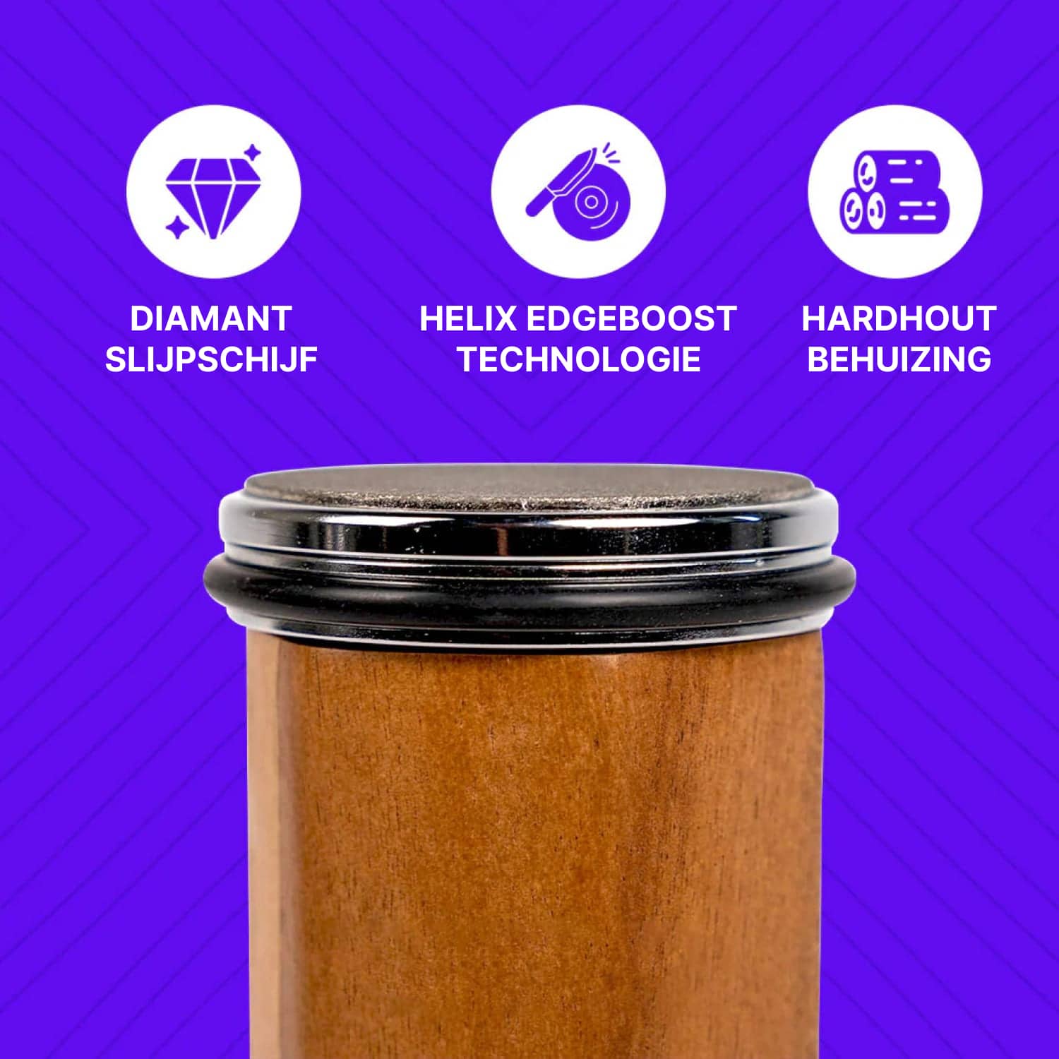 Minimaal materiaal wordt verwijderd, waardoor de levensduur van uw mes wordt verlengd terwijl perfecte scherpte wordt behaald.
