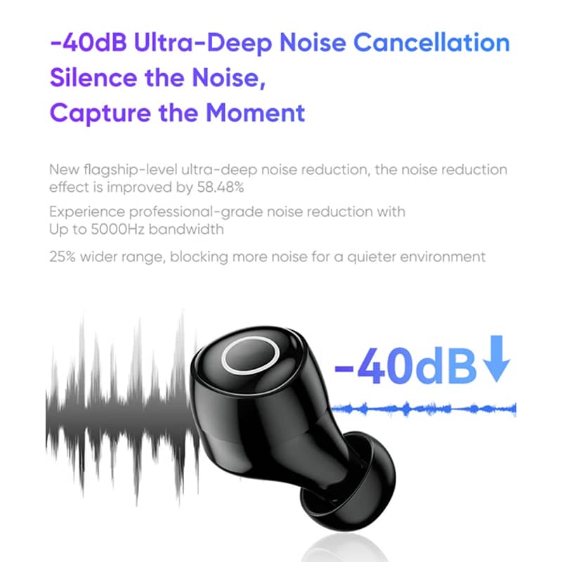 The -40dB ANC blocks up to 5000Hz bandwidth noise, effectively silencing construction sounds, traffic, and machinery. It reduces environmental noise by 58.48% more than standard earbuds, making it ideal for extreme conditions.