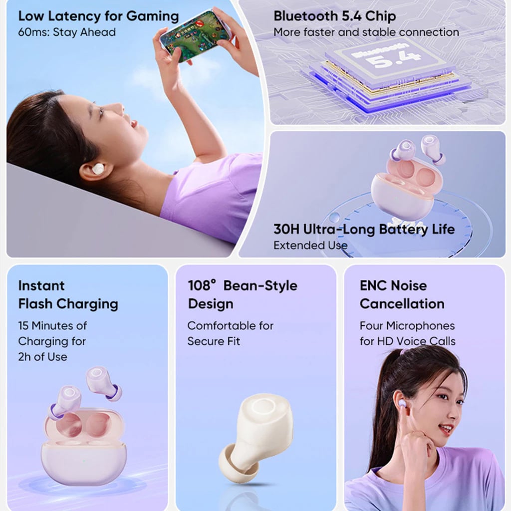 The memory foam tips automatically conform to your unique ear shape, while the ergonomic 108° bean-style design mimics natural ear curves. This ensures a secure, comfortable fit for all ear sizes without slipping.