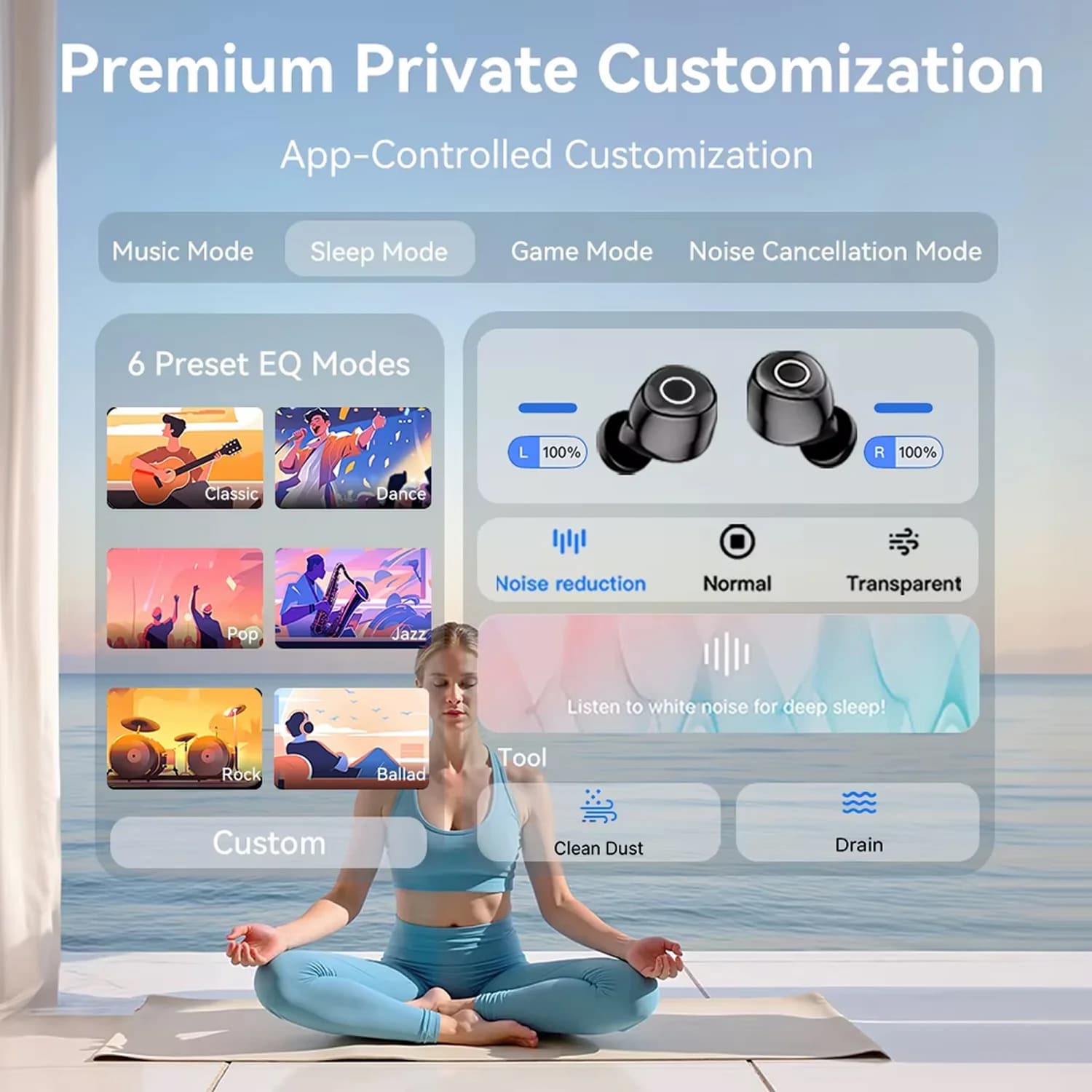 Yes, the companion app offers three noise cancellation modes: full ANC, normal, and transparent. You can also switch between music, sleep, game modes, and adjust EQ settings for personalized audio experiences.