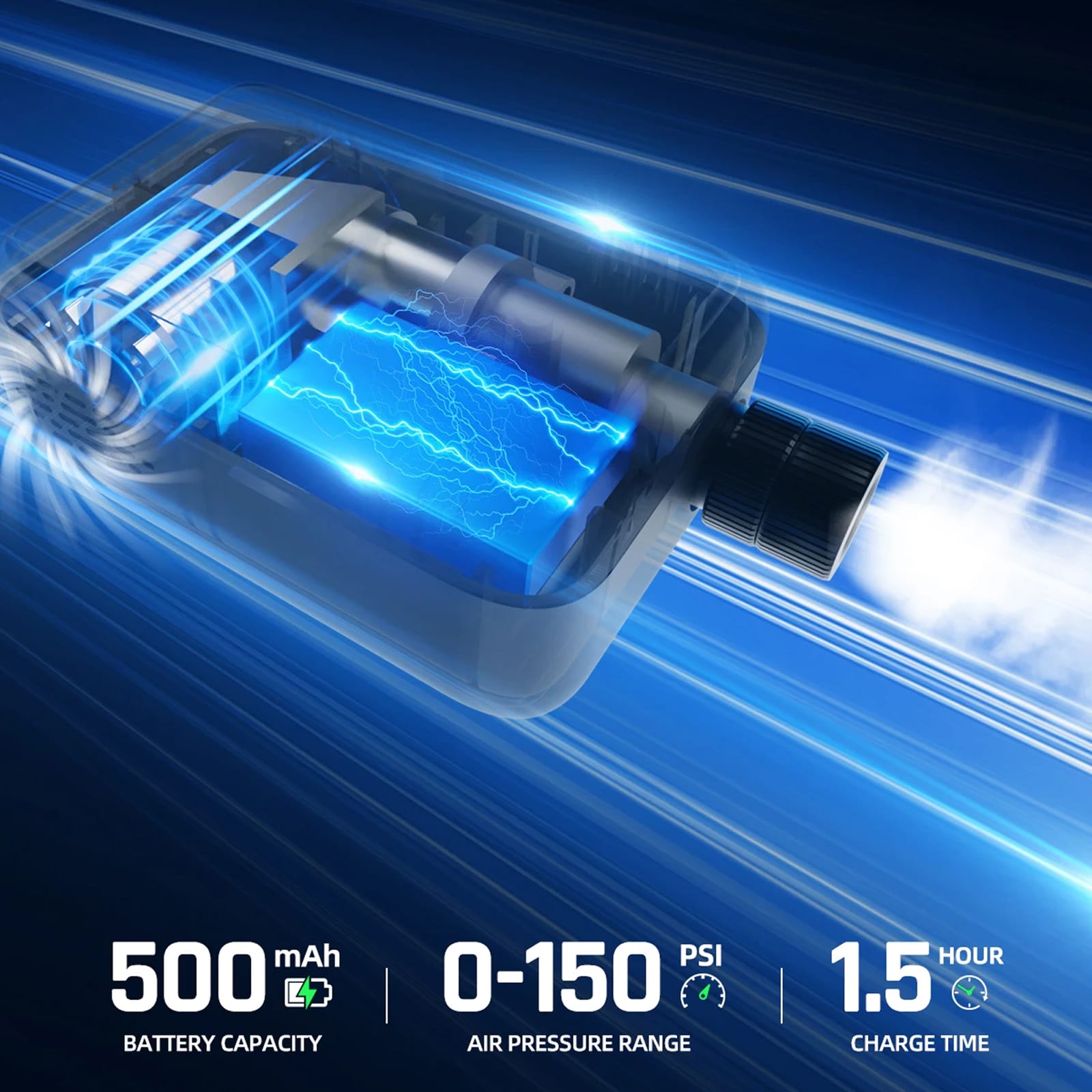 The Tyrisclix Bike Pump charges fully in just 1.5 hours using the included Type-C cable. This quick charging time ensures you’re never without power when you need it.